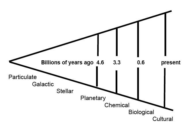 No one will deny that today’s industrial/technilogical culture is vastly more complex than the culture of centuries ago. Contrast a village system based upon a farming economy relying on animal energy with a modern cosmopolitan system with its machines and electronic technology. Whence comes this increase in complexity? The diagram on the previous page may help to explain part of the process.